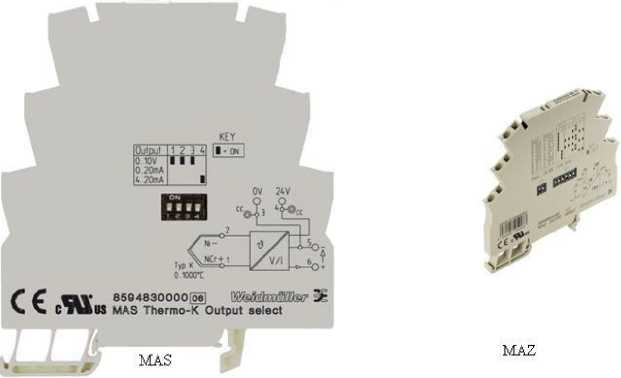 Преобразователи серий MAS, MAZ представляют собой компактный трехъярусный (до 6 точек присоединения проводников) корпус шириной 6,1 мм. Возможно распределение питания с помощью перемычек серии ZQV 4N.