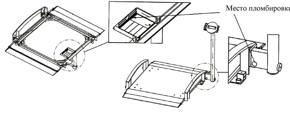 Знак поверки в виде наклейки наносится на корпус весов рядом с маркировочной табличкой. Схема пломбировки от несанкционированного доступа приведена на рисунках 3 и 4.