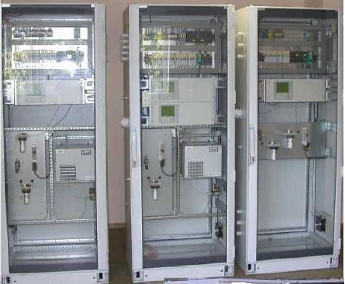 Газоанализаторное оборудование, в составе комплекса, является, серийно выпускаемым, функционально законченным изделием внесенным в Государственный реестр СИ РФ. Представляет собой одноканальный прибор с двумя или тремя последовательно установленными ячейками измерения. Принцип действия ячейки для измерения оксидов углерода, азота, серы и других веществ основан на избирательном поглощении молекулами инфракрасного излучения. Ячейка для измерения содержания кислорода использует электрохимические превращения кислорода в пограничных слоях электродов. Количество измеряемых компонентов от двух до четырех (включая кислород) в зависимости от исполнения. Конструктивно газоанализаторы представляют собой единый блок со встроенным микропроцессором для задания параметров процесса измерения, обработки измеренной информации. В составе комплекса газоанализаторы устанавливаются в отдельном шкафу. Связь с остальными элементами комплекса, а также АРМ осуществляется через ETHERNET (Ethernet 10BaseT (RJ-45)).