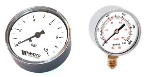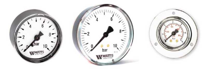 Манометры M3A, F+R201 с контрольным сектором применяются для контроля за соответствием измеряемого давления заданному значению. Манометры M1, MP1, F+R200, F+R201, F+R250, F+R260 выпускаются с радиально расположенным штуцером, остальные модификации - с аксиальным штуцером. Корпуса манометров с диаметрами 80 и 100 мм изготавливаются из стали, остальных манометров - из пластмассы.