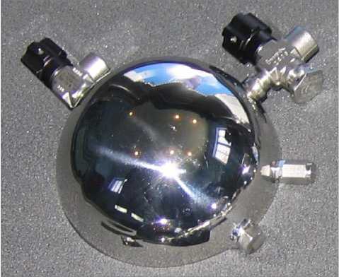 Конструктивно корпус пикнометра выполнен в виде металлического сосуда сферической формы с двойными стенками, снабжённого предохранительным клапаном и двумя вентилями для заполнения и слива пробы. Оси вентилей расположены под углом 900. Для обеспечения термоизоляции полость между стенками корпуса пикнометра вакуумируется.