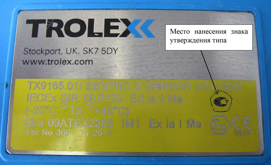 Заводской (серийный) номер и знак утверждения типа наносятся на табличку, расположенную на лицевой стороне корпуса системы. Общий вид таблички и место нанесения знака утверждения типа приведены на рисунке 2.