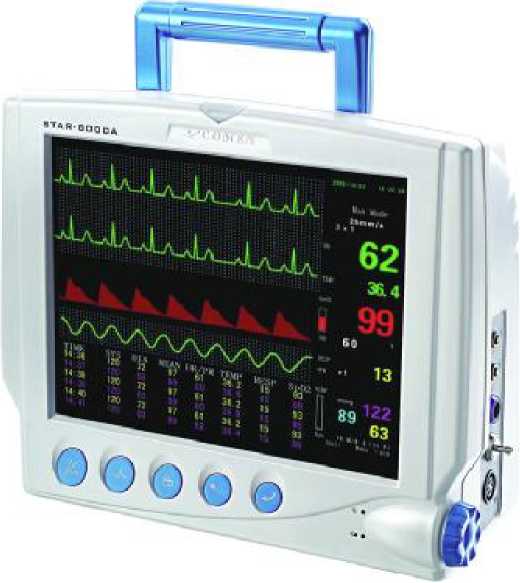 Мониторы пациента мульти-параметровые STAR 8000 модели «STAR 8000A», «STAR 8000B», «STAR 8000С», «STAR 8000D» (далее - мониторы) предназначены для измерений и регистрации биоэлектрических потенциалов сердца, частоты сердечных сокращений (ЧСС), артериального давления (АД), насыщения кислородом гемоглобина артериальной крови (сатурации), частоты пульса (ЧП), температуры тела (t°), наблюдения на экране монитора электрокардиограммы (ЭКГ), значений и графиков измеряемых параметров состояния пациента.