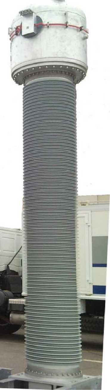 Элементы первичной обмотки закреплены на резервуаре, который закреплен на полимерной (фарфоровой) покрышке, установленной на основании трансформаторов.