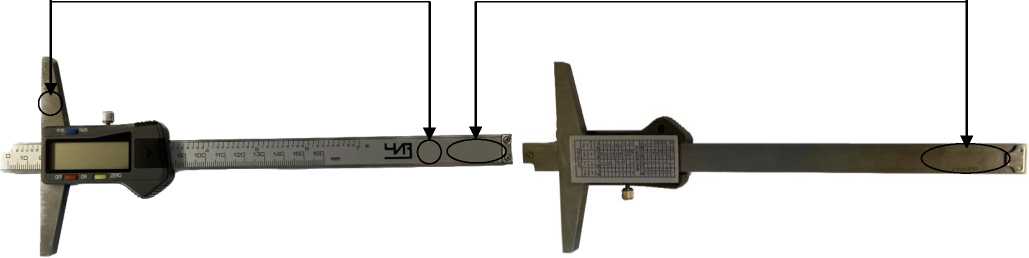 2) ШГЦ - цифровое отсчетное устройство (отсчет размеров производится по цифровому отсчетному устройству. Имеется возможность измерения в дюймах, а также возможность установки нуля).