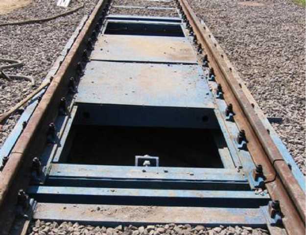 ГПУ включает в себя несколько взвешивающих платформ, а также промежуточные и подъездные платформы. Силовой каркас взвешивающей платформы выполнен из высокопрочной стали и опирается на четыре весоизмерительных тензорезисторных датчика (далее - датчики). Промежуточные платформы находятся между взвешивающими платформами. Подъездная платформа устанавливается между взвешивающей платформой и внешним участком рельсового пути. Платформы ГПУ устанавливаются либо на единый железобетонный фундамент либо на раму, установленную на нижнее строение железнодорожного пути. Общий вид весов представлен на рисунке 1.