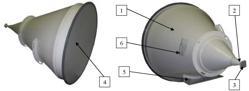 Рупор антенны изготовлен из алюминиевого сплава. Внешние поверхности антенны и крепежно-поворотного устройства покрыты порошковой краской.