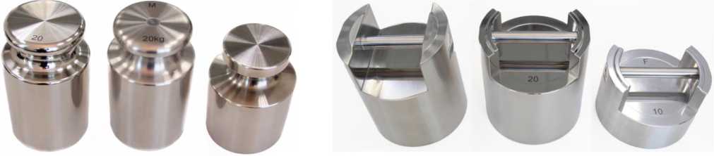 Гири массой 20 кг изготавливаются цилиндрической формы с головкой. Гири массой 5, 10 и 20 кг классов точности F1, F2, М1 могут изготавливаться цилиндрической формы с ручкой.