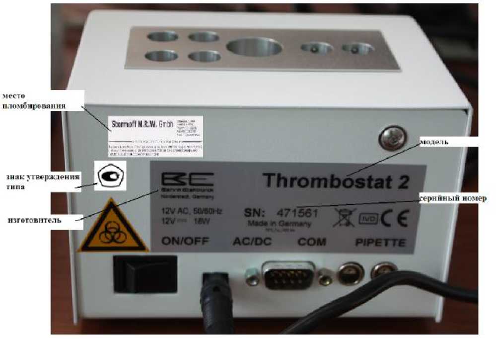 Знак утверждения типа наносится на титульный лист руководства по эксплуатации типографским способом и на заднюю панель Коагулометра методом наклеивания.