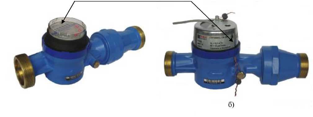 Внешний вид счетчиков воды приведен на рисунке 1. Места для нанесения знака утверждения типа Российской Федерации показаны на рисунке 1. Места пломбирования приведены на рисунках 2 и 3.