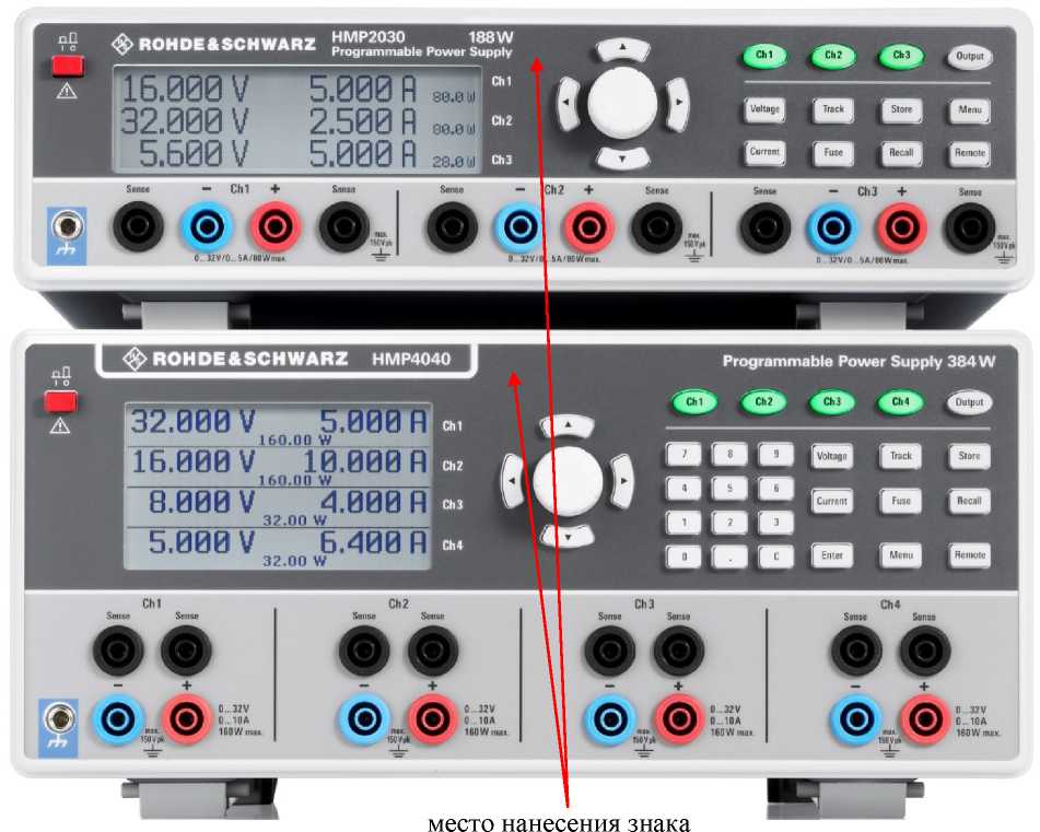 наносится на переднюю панель источников питания постоянного тока линейных НМР2020, НМР2030, НМР4030, НМР4040 в соответствии с рисунком 1 методом наклейки и на титульный лист руководства по эксплуатации типографским способом.