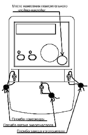 Крышка зажимов и крышка съемного щитка пломбируются свинцовой пломбой так, как показано на рисунке 1. Пломбирование производится организацией, эксплуатирующей счетчик.