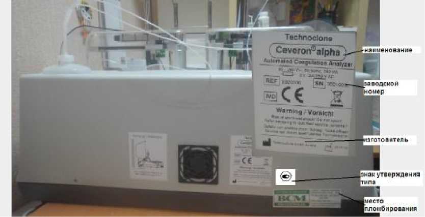 Знак утверждения типа наносится на титульный лист руководства по эксплуатации типографским способом и на заднюю панель анализатора методом наклеивания.