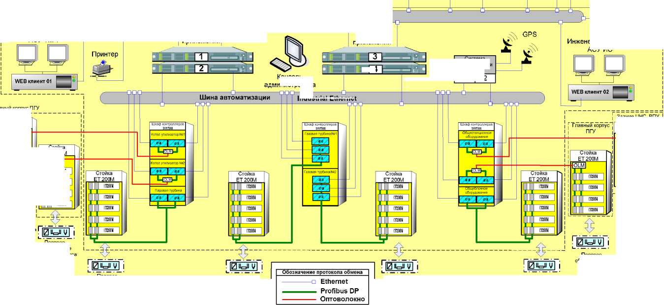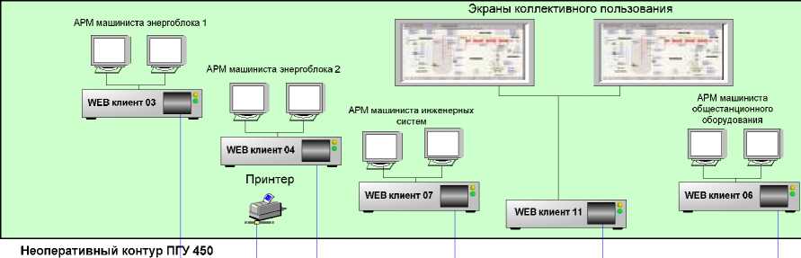 компьютеров, которые получает информацию от серверов системы по общестанционной сети Ethernet и обеспечивают визуализацию результатов измерений и функционирования оборудования энергоблока;