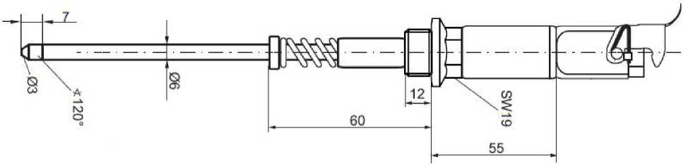 Диаметр монтажной части ТП, мм:................3 (диаметр плоскости наконечника)/ 6