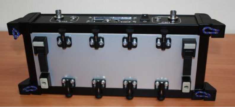Прибор имеет два входных канала регистрации аналоговых сигналов, к которым могут подключаться пьезоэлектрические преобразователи со встроенным или внешним предусилителем, согласованные по напряжению и току питания, выходному сопротивлению и частотному диапазону со входными каналами прибора.