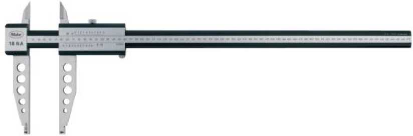 Штангенциркули MarCal 18 N (рисунок 5), MarCal 18 DN (рисунок 6), MarCal 18 NA (рисунок 7) состоят из штанги, рамки с нониусом, зажимающего элемента, губок с кромочными измерительными поверхностями для измерений наружных размеров (MarCal 18 DN, MarCal 18 NA) или без них (MarCal 18 N), губок с плоскими и цилиндрическими измерительными поверхностями для измерений наружных и внутренних размеров соответственно.
