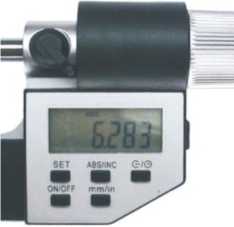 Микрометры с цифровым отсчетным устройством состоят из скобы, на которой расположено считывающее устройство с жидкокристаллическим экраном, а также кнопки, с помощью которых осуществляется ряд специальных функций, например, установка начала измерительного диапазона, возможность удерживать последний результат измерений, установка нуля в любом положении шпинделя, что позволяет производить относительные измерения и т. д.