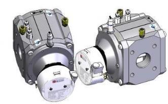 Принцип действия счетчиков основан на вытеснении строго определенного объема газа вращающимися роторами. Объем вытесненного газа определяется объемом измерительной камеры счетчика, образованной внутренней поверхностью корпуса и поверхностями двух синхронно вращающихся в противоположных направлениях роторов. Вращательное движение роторов через редуктор и магнитную муфту передается на восьмиразрядный счетный механизм, который регистрирует число оборотов роторов, а, следовательно, и объем газа, прошедший через счетчик. Таким образом, один поворот системы роторов соответствует передаче определенного объема газа со входа счетчика на его выход.