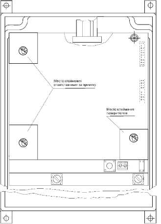 Места пломбировки, исключающей несанкционированные настройки и вмешательства, которые могут привести к искажению результатов измерений счетчиков, показаны на рисунке 2.