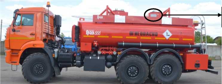 Рисунок 1 - Общий вид автоцистерны ГРАЗ-АЦ-11,0 и место нанесения заводского номера