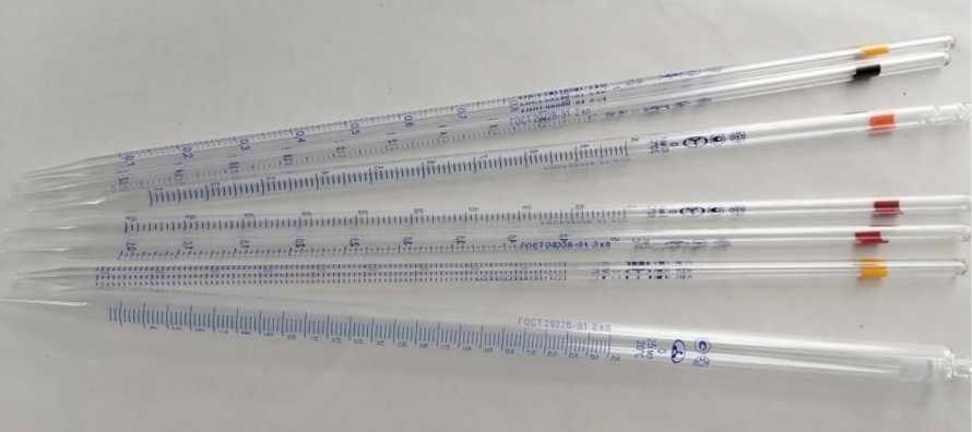 Пипетки градуированные тип 1 предназначены для измерений объема жидкости.