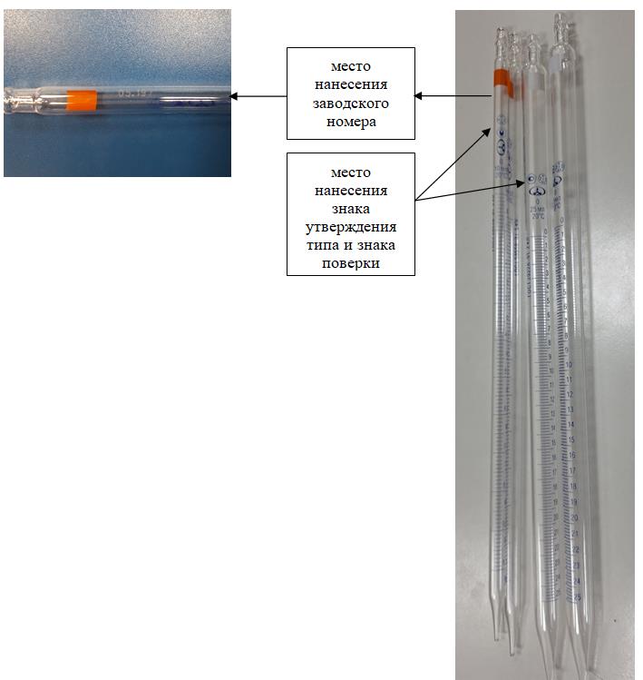 Рисунок 2 - Место нанесения заводского номера, знака утверждения типа и знака поверки на пипетки