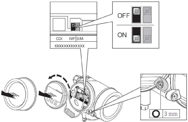 В уровнемерах конструктивно предусмотрено наличие защиты от записи посредством переключателя блокировки. Переключатель блокировки может иметь два состояния: «Off» («Выключен») или «On» («Включен») (рис. 3).
