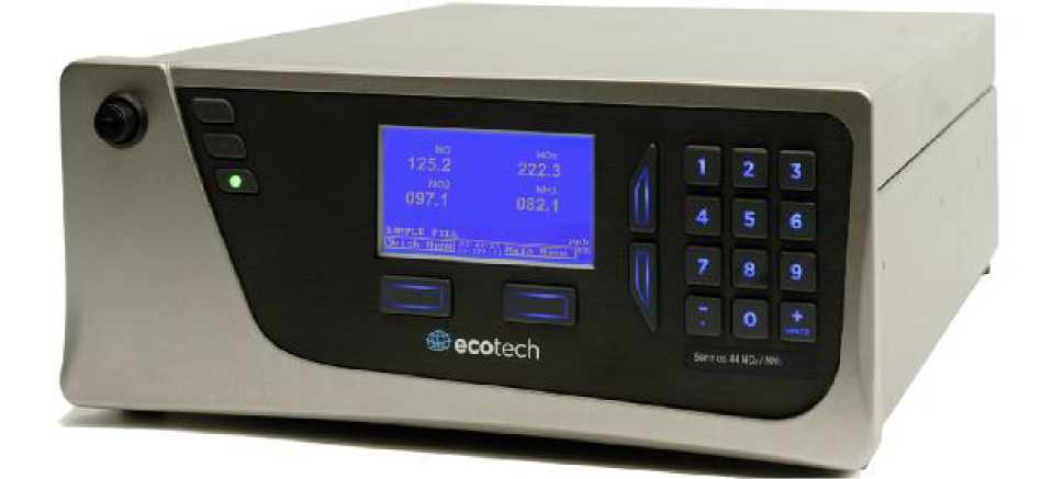 Газоанализаторы Serinus 44 (рис. 2) предназначены для измерений содержания аммиака, оксида и диоксида азота, суммы оксидов азота NOx, и состоят из анализатора и конвертера, в котором аммиак превращается в оксид азота. Анализаторы измеряют объемную долю TNx (суммарное содержание NH3, NO2 и NO), NOx и NO. Содержание NO2 вычисляется как разность NOx и NO. Содержание NH3 рассчитывается как разность значений TNx и NOx. Значения объемной доли всех перечисленных компонентов выводятся на дисплей.