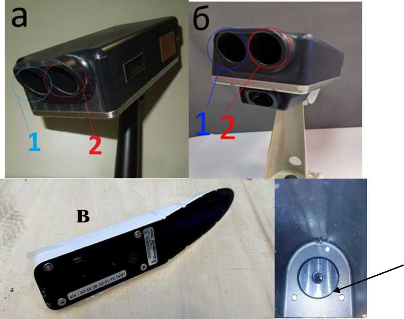 а - «ДСПД», б - «ДСПД-М», в - «ДСПД-Т», 1 - излучатель, 2 - приемник, 3 - излучатель (приемник)