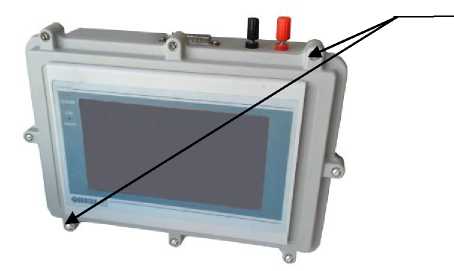 Конструктивно имитатор расхода исполнения П выполнен в металлическом корпусе, на лицевой части которого установлена панель оператора СПК107, имеющая жидкокристаллический TFT дисплей, совмещенный с резистивной сенсорной панелью. Гнезда "+24 В", "-24 В" предназначены для подключения источника питания. Внутри корпуса расположена электронная плата.