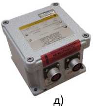Рисунок 1 - Общий вид измерителя БИКМ М-106М. а - ротор, б - блок обработки, в - статор, г - датчик частоты вращения, д - коробка соединительная