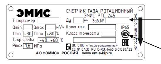 Счетчик газа ротационный ЭМИС-РГС 245 в исполнении согласно договора поставки |