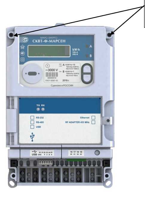 Общий вид счетчиков СКВТ-Ф-МАРСЕН и место пломбирования от несанкционированного доступа, обозначение места нанесения знака поверки представлены на рисунке 1.