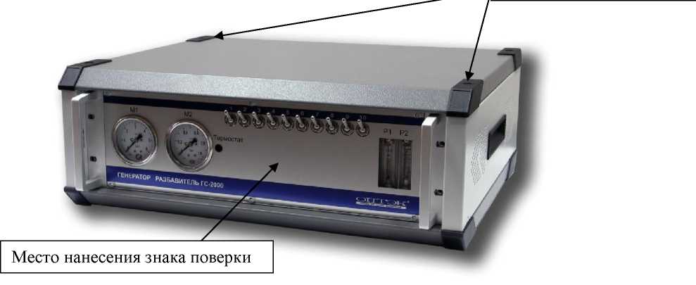 Рисунок 2 - Общий вид генератора ГС-2000 (исполнение 2). с указанием мест пломбирования и нанесения знака поверки