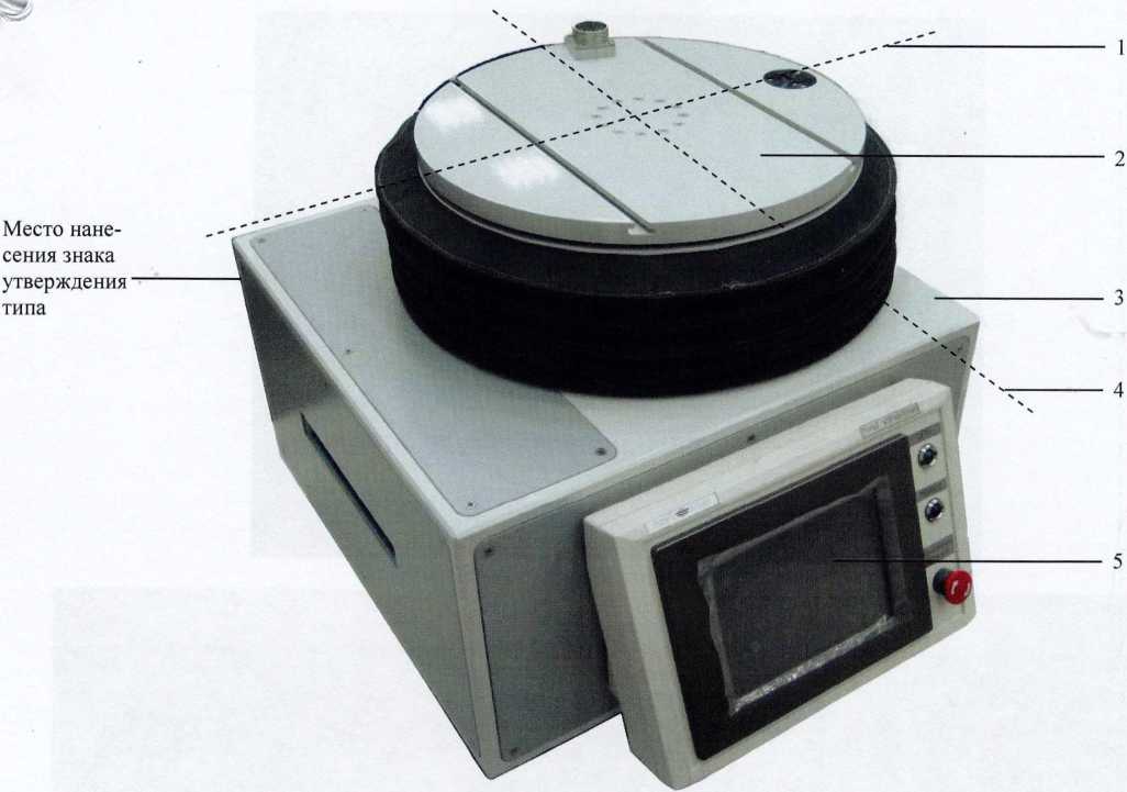 1 - Поперечная ось; 2 — Платформа приборная; 3 - Блок поворотный; 4 - Продольная ось; 5 — Пульт управления;