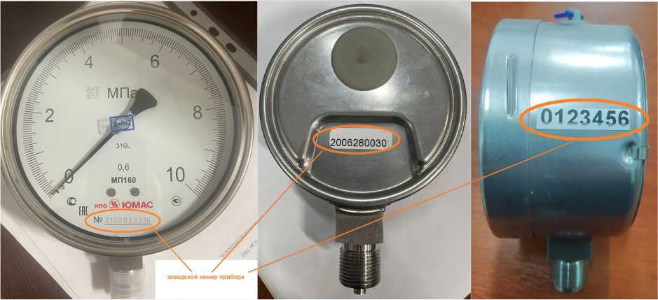 Заводской номер наносится методом печати, гравировки или наклейки на циферблат или корпус прибора в местах, указанных на рисунке 13.