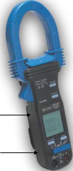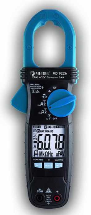 Измерение силы тока производится без разрыва измерительной цепи путем охвата проводника токоизмерительным зажимом. Измерение напряжения, сопротивления, электрической емкости, частоты производится с помощью отдельных измерительных входов.