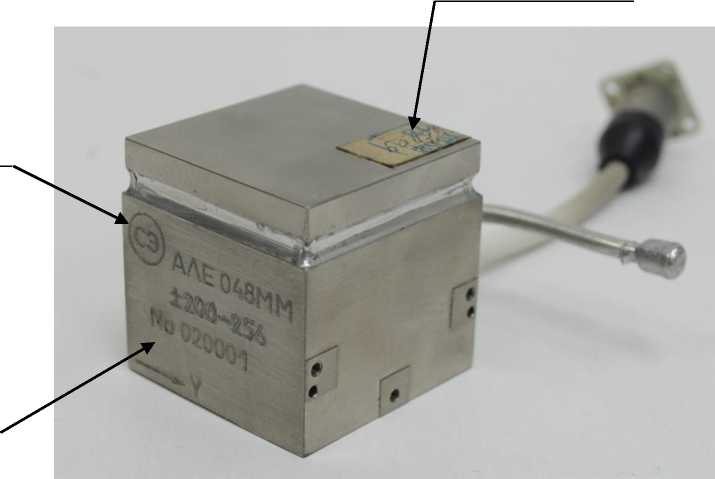 Общий вид акселерометра с указанием мест нанесения заводского номера, маркировки, знака защиты от статического электричества и место расположения пломбы от несанкционированного доступа представлен на рисунке 1.