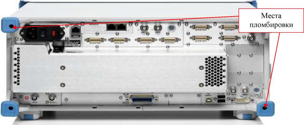 Внешний вид тестеров радиокоммуникационных CMW500 и место нанесения наклейки со знаком утверждения типа приведен на рисунке 1. Схема пломбировки от несанкционированного доступа приведена на рисунке 2.