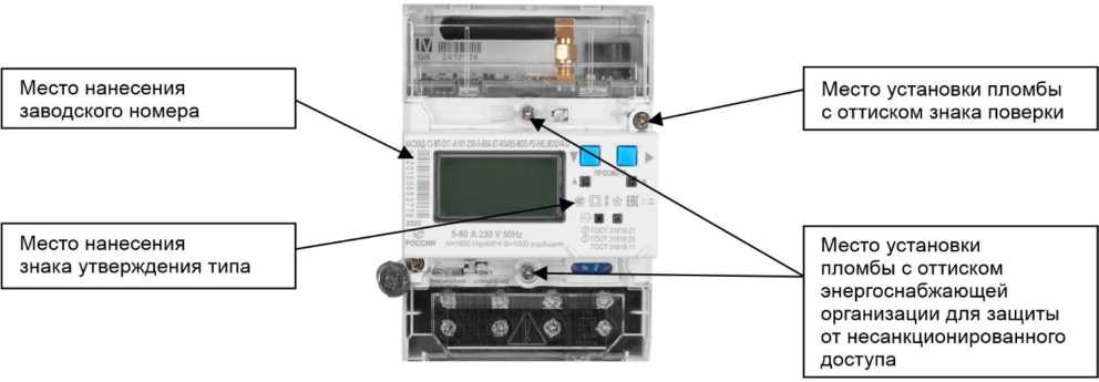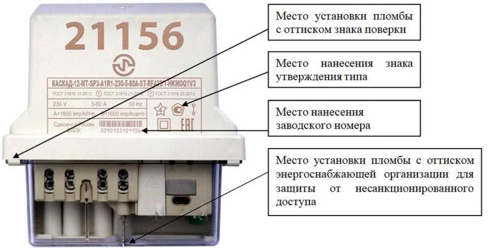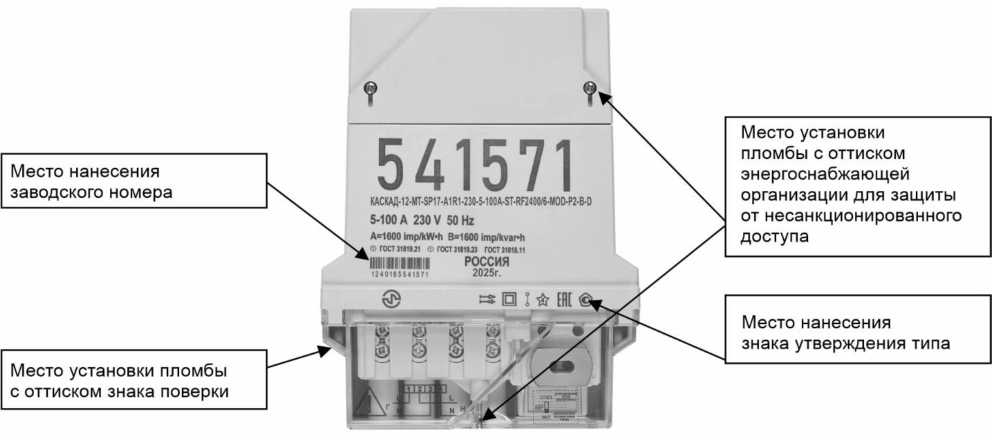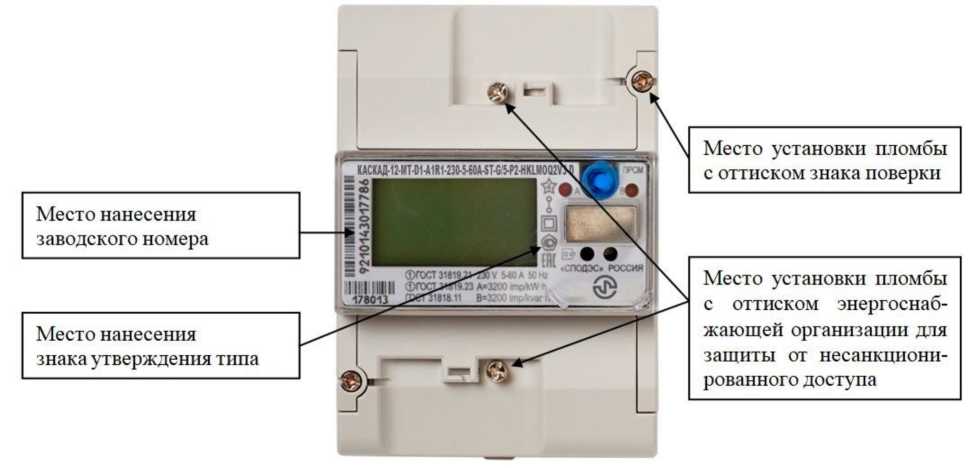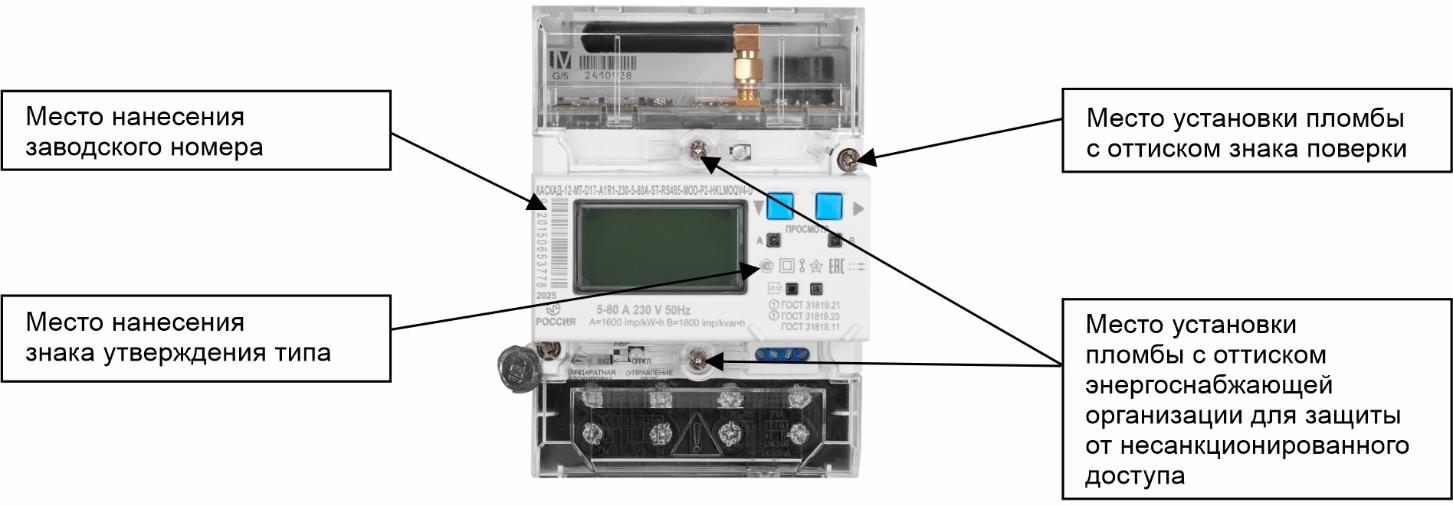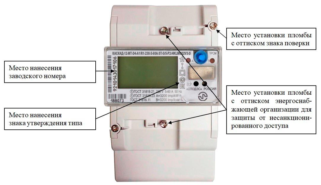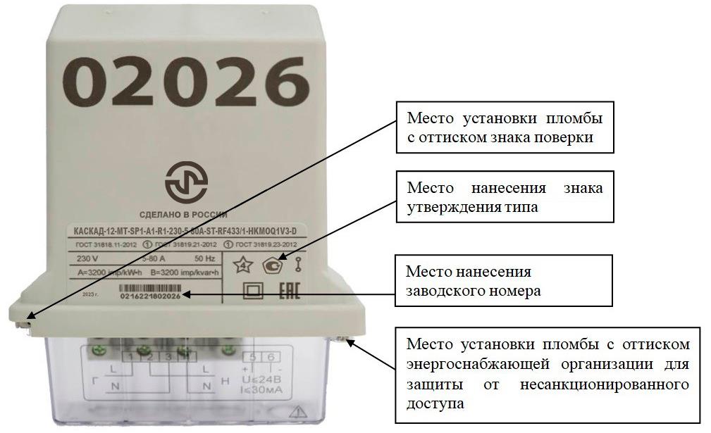 наносится на панель счетчика офсетной печатью (или другим способом, не ухудшающим качества), на титульный лист руководства по эксплуатации типографским способом.