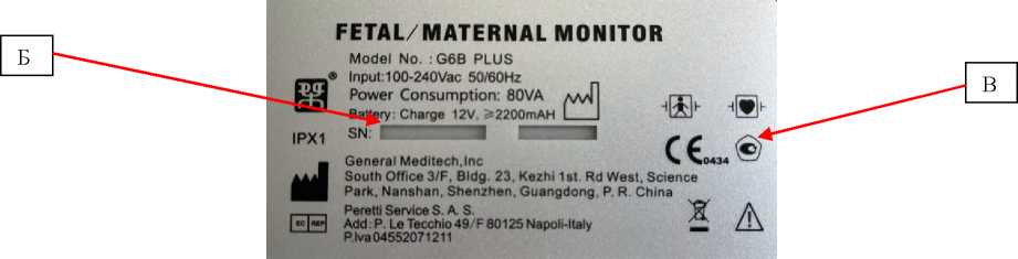 Рисунок 1 - Общий вид мониторов медицинских фетальных матери и плода модели G6A Plus, G6B Plus схема опломбирования от несанкционированного доступа (А)