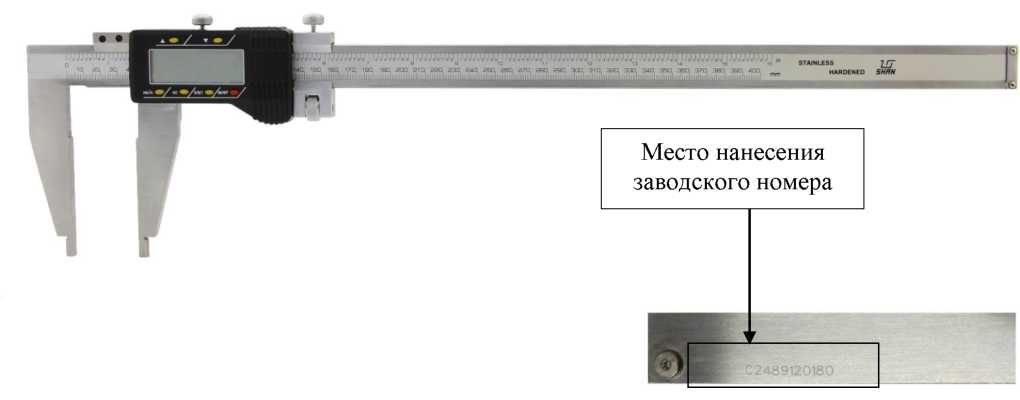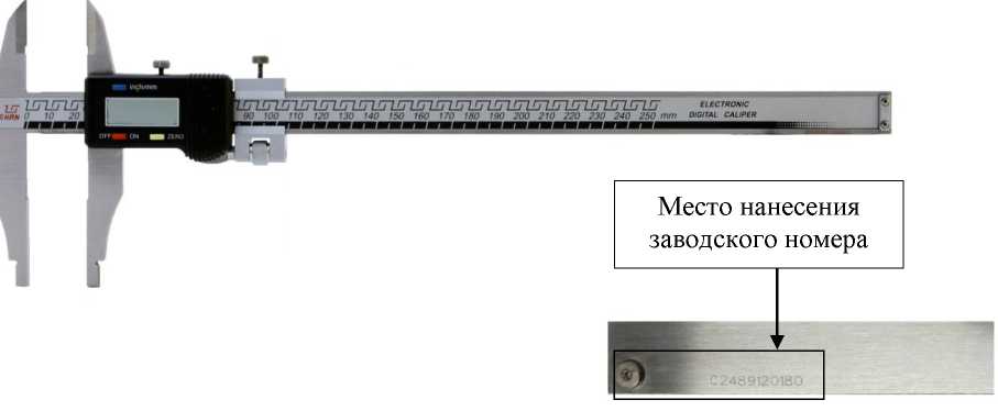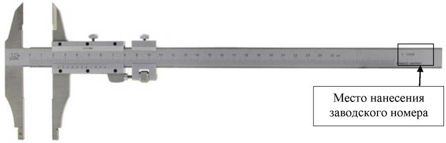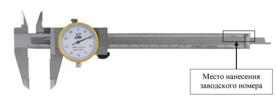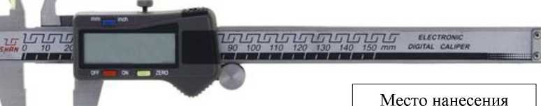 наносится на футляр штангенциркуля методом наклейки и в правом верхнем углу на паспорта типографским методом.