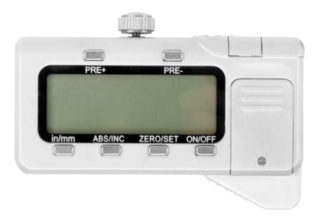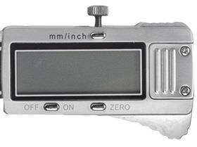 Принцип действия штангенциркулей с отсчетом по цифровому отсчетному устройству (рисунки 3, 5, 7) - механический с выводом показаний на жидкокристаллический (ЖК) экран цифрового отсчетного устройства. Отсчет размеров производится непосредственно считыванием показаний на ЖК экране цифрового отсчетного устройства, расположенного на рамке штангенциркуля. Также на рамке находятся кнопки включения/выключения штангенциркуля (OFF/ON), установки нуля (ZERO) и выбора режима единиц измерений мм/дюйм (mm/inch). Питание штангенциркулей осуществляется от встроенного источника питания. Возможные виды цифровых отсчетных устройств представлены на рисунке 8, а измерительных шкал - на рисунке 9.