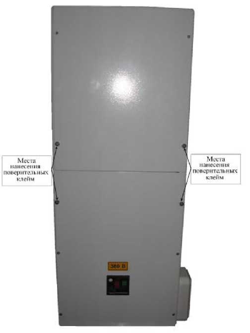 Общий вид установки для поверки счетчиков газа типов 551031М, 551031М-01 и места нанесения поверительных клейм представлены на рисунках 1 и 2.
