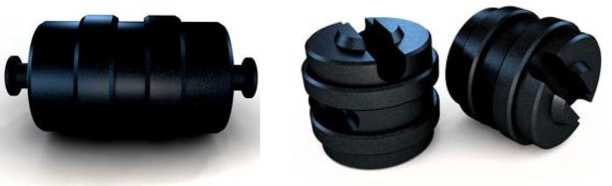 Рисунок 3 - Общий вид гирь в форме цилиндра с осью (слева) и с проушинами и посадочными местами для штабелирования (справа)