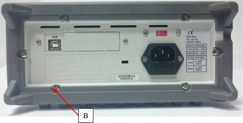 Рисунок 2 - Вид задней панели источников, место пломбировки от несанкционированного доступа (В)