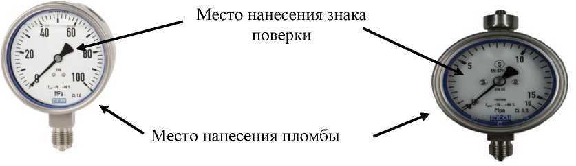 Рисунок 1 - Внешний вид манометров, места нанесения пломб и знака поверки