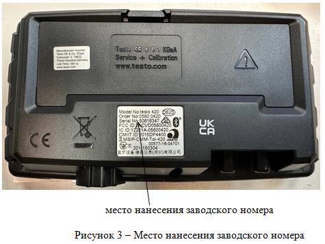 Заводской номер в виде цифрового обозначения наносится методом термопечати на наклейку, прикрепленную к корпусу измерительного прибора в месте, указанном на рисунке 3.
