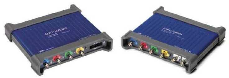 Осциллографы являются многофункциональными средствами измерений параметров сигналов. Принцип действия основан на высокоскоростном аналого-цифровом преобразовании входного сигнала, цифровой обработке его с помощью микропроцессора и записи в память. В результате обработки сигнала выделяется его часть, отображаемая на экране внешнего персонального компьютера (ПК). Управление осциллографами осуществляется по интерфейсу USB от внешнего ПК. Питание осциллографов осуществляется через разъем USB. Для моделей осциллографов с током потребления свыше 1200 мА предусмотрено питание от универсального сетевого адаптера.